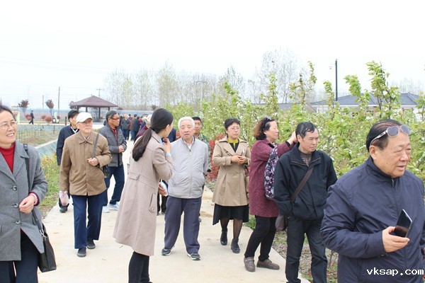 在省农垦集团盱眙三河农场参观时,老干部们一下车,就被眼前大片梨树林和4月8日梨花节彩排现场的精彩演出所吸引,数万颗梨树排列整齐、梨花绽放,台上的演出精彩纷呈、引人入胜,老干部们有的走进梨花的海洋中留影留念,有的则坐下来观看台上演出。在“三舒”牌草莓种植基地参观时,老干部不用弯腰就可以在架子上采摘到鲜嫩欲滴的草莓,这种人性化的采摘方式得到广大老干部的青睐。近年来,三河农场坚持走高效生态现代农业发展之路,从主要追求产量和依赖资源消耗的粗放经营转到数量质量效益并重的集约型发展。已推出草莓酒、梨子酒、花粉、蜂胶、三特大米、恒河香醋等系列农副产品。老干部们对绿色、健康、无污染、无公害的农副产品饶有兴趣。