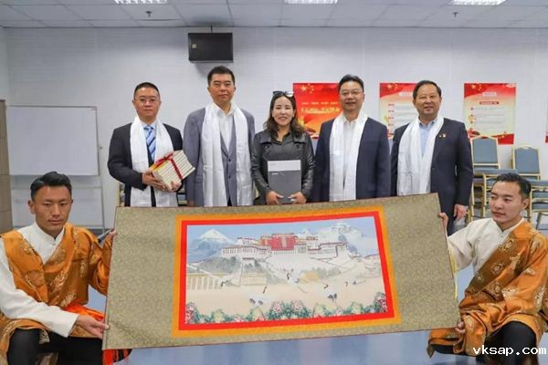 欢迎仪式上,德吉卓玛代表布达拉旅游文化集团赠送了拉萨极具文化特色的工艺品,狄嘉、胡明代表金陵饭店集团赠送了反映金陵企业文化和餐饮特色的书籍。