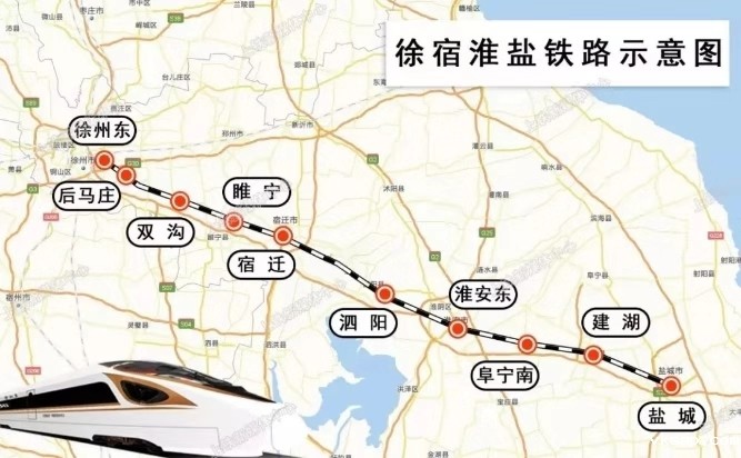 被称为苏北铁路“金腰带”的徐宿淮盐铁路线路西起徐州铁路枢纽徐州东站,经睢宁县、宿迁市、泗阳县,经淮安至盐城,全长约316公里,设计时速为250公里。全线设徐州东、观音机场、睢宁、宿迁、泗阳、淮安东、阜宁南、建湖、盐城等9个车站。目前,联调联试工作已进入尾声,每天都有十几到二十多趟测试列车从车站经过,离开通只剩下最后1个多月。