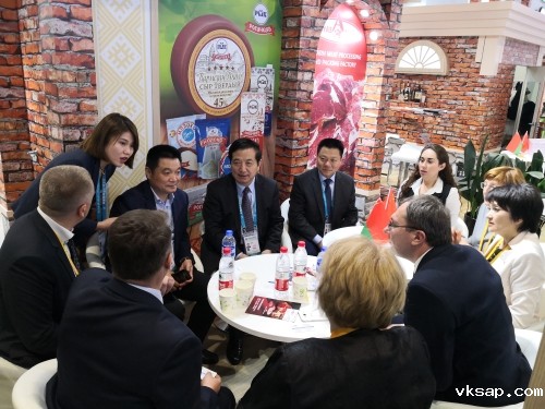 11月6日,海企集团总裁王远见、副总裁王先正率团与白俄罗斯农业部长霍奇科共商在与友好省州莫吉廖夫州绿色食品合作的基础上扩大区域与产品种类,与俄罗斯铁路国立控股股份有限公司深入探讨物流与贸易的结合。当晚,王先正副总裁代表集团参加了白中商业论坛,与外商进行现场接洽。