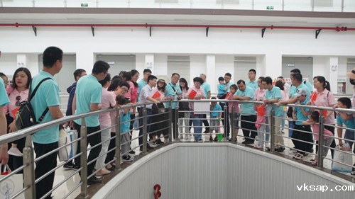 6月2日一早,徐州公司管理设施门前就聚满了的员工亲属,他们身着带有南水北调标志的统一服装,集中乘车前往此次活动的第一站—南水北调邳州站。在邳州站现场,大家细致参观了站区现代雄伟的建筑风貌后,又来到主厂房听取讲解。泵站管理人员从水资源短缺讲起,详细向员工家属和小朋友们讲述了泵站概况、设备机型、日常管理等相关知识,徐州公司党总支书记、总经理王亦斌更是亲自讲解了泵站建设的重要意义和运行所发挥的巨大效益。在泵站管理人员的带领下,小朋友们牵着父母的手,认真参观了机组设备和站区设施。