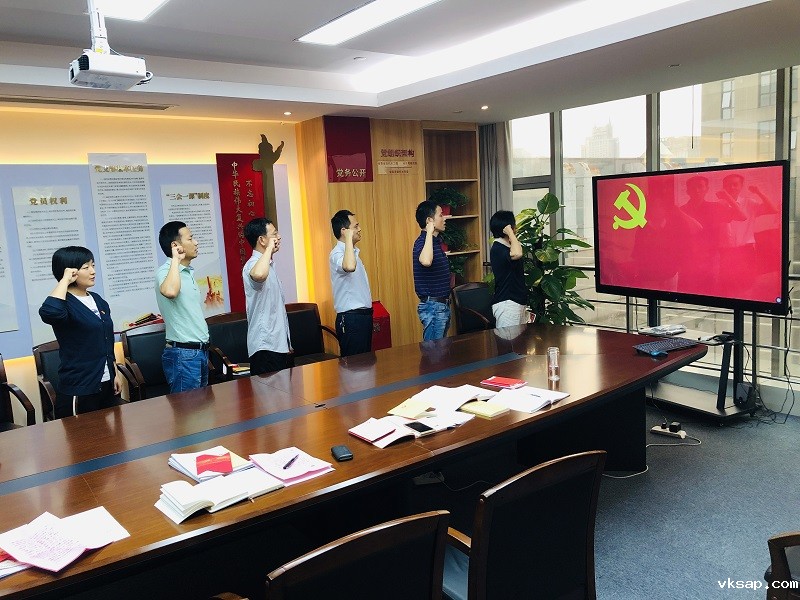 最后,全体党员佩戴党徽,面对鲜红党旗,由支部书记唐燕萍领誓,用洪亮的声音重温入党誓词,大家都感到激情澎湃、内心振奋,纷纷表示这样的活动意义重大,更加深刻领悟“不忘初心、牢记使命”的重要含义。