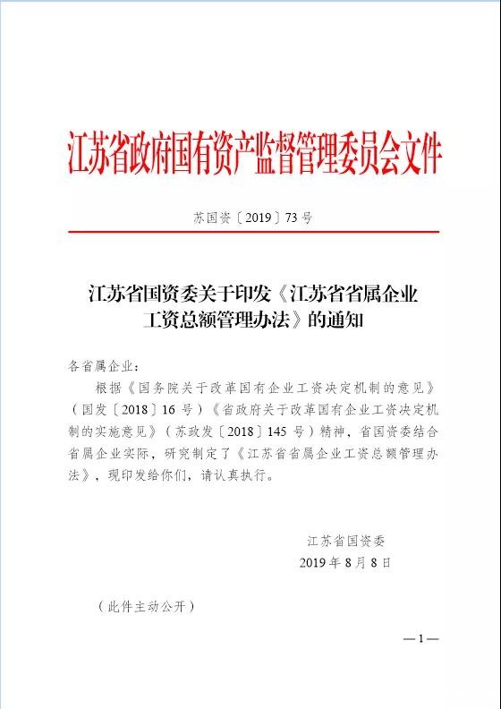 为了进一步规范国有企业收入分配管理,增强国有企业的活力和竞争力,实现企业高质量发展,根据《关于改革国有企业工资决定机制的意见》(国发〔2018〕16号)、《中央企业工资总额管理办法》(国务院国资委令第39号)以及《省政府关于改革国有企业工资决定机制的实施意见》(苏政发〔2018〕145号),近日,点点彩票app下载官网手机版安卓正式出台了《江苏省省属企业工资总额管理办法》。