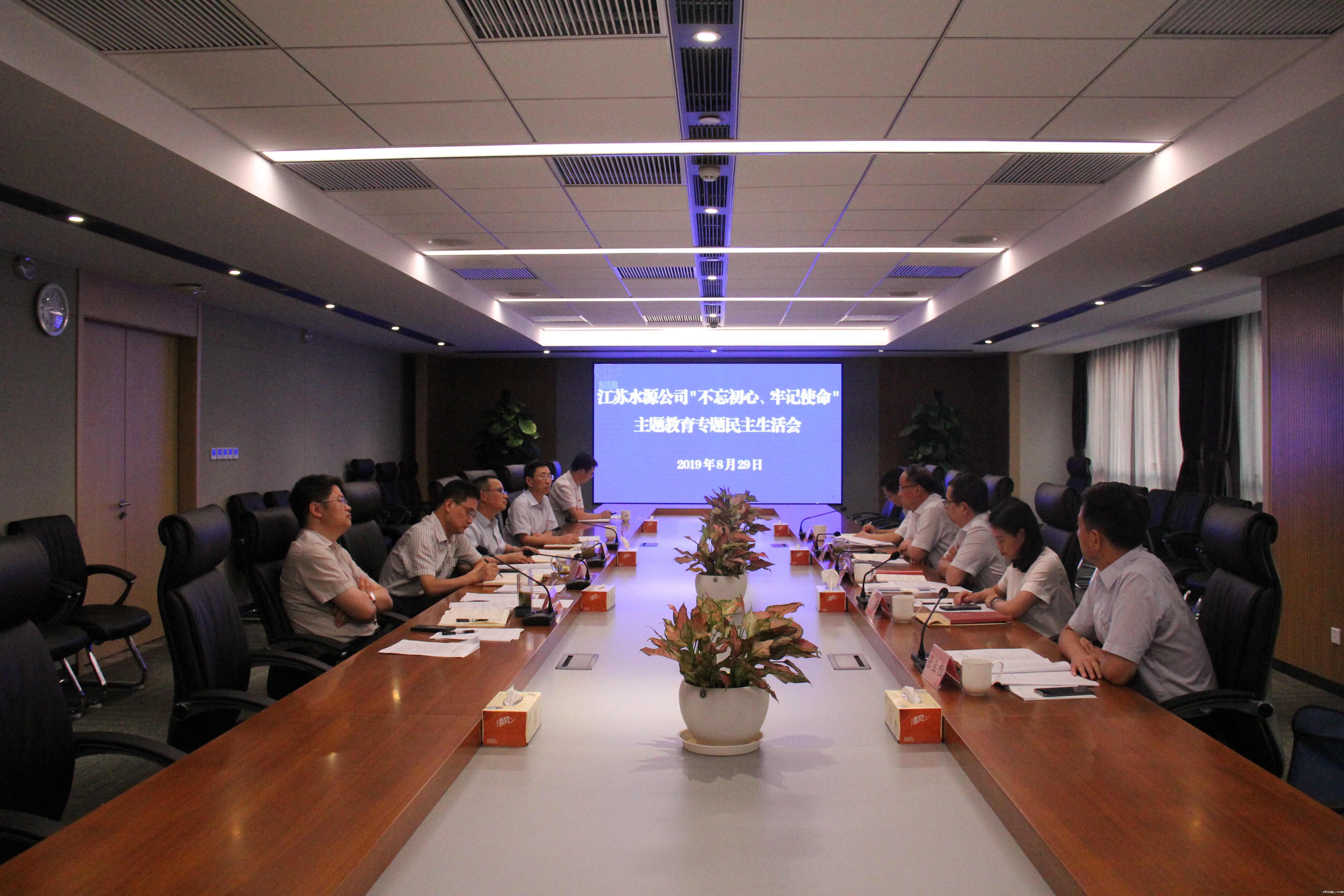 根据中央《关于第一批主题教育单位开好“不忘初心、牢记使命”专题民主生活会的通知》精神和省委主题教育领导小组办公室部署,8月29日下午,江苏水源公司党委召开“不忘初心、牢记使命”主题教育专题民主生活会,紧扣学习贯彻习近平新时代中国特色社会主义思想这一主线,聚焦不忘初心、牢记使命这一主题,突出力戒形式主义、官僚主义这一重要内容,围绕理论学习有收获、思想政治受洗礼、干事创业敢担当、为民服务解难题、清正廉洁作表率的目标,按照习近平总书记关于“四个对照”“四个找一找”的要求,盘点收获、检视问题、深刻剖析,推动党员领导干部进一步增强“四个意识”、坚定“四个自信”、做到“两个维护”,推动领导班子履职尽责、团结奋进,牢记初心使命,重整行装再出发,在新时代把党的自我革命推向深入。