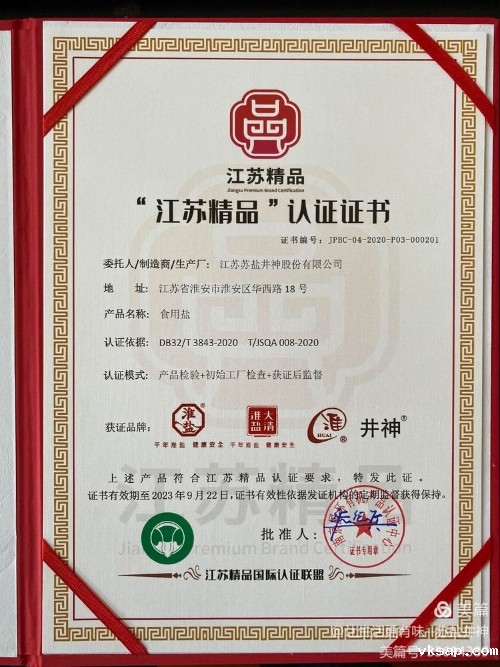 近日,苏盐集团所属苏盐井神公司组织申报的“淮盐”“大清淮盐”“淮”“井神”牌食用盐产品荣获首届“江苏精品”认证证书,同时也获得了本次食品类认证机构——南京国环有机产品认证中心(中国首家有机食品认证机构)认证的13家食品企业中的最高得分。
