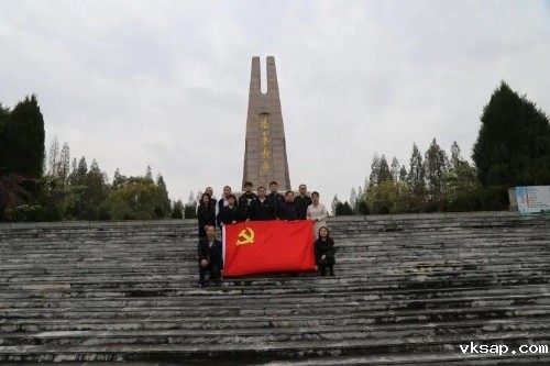 随后,大家一起来到朱家岗村烈士陵园开展党性教育主题活动。全体人员在纪念碑前向烈士敬献花篮、鞠躬致敬并肃立默哀,以此缅怀革命先烈的丰功伟绩,表达怀念与崇敬之情。