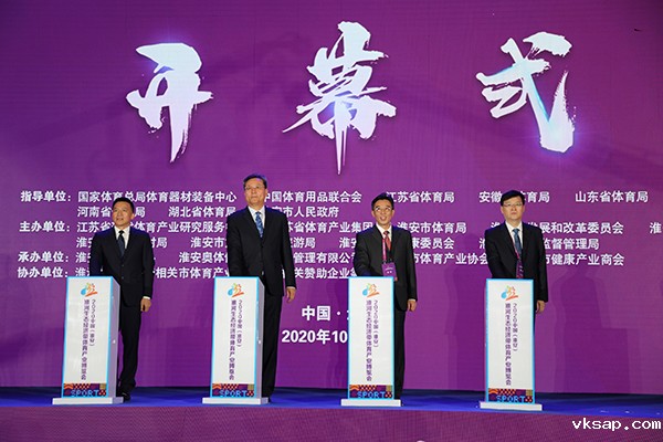 国家体育总局体育器材装备中心副主任王平,省体育局局长陈少军,省体育产业集团党委书记、董事长顾晔,淮安市市长陈之常共同启动开幕。