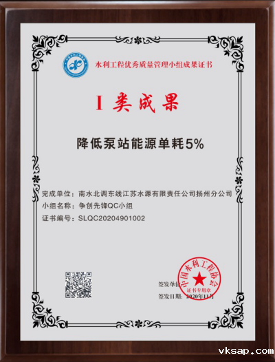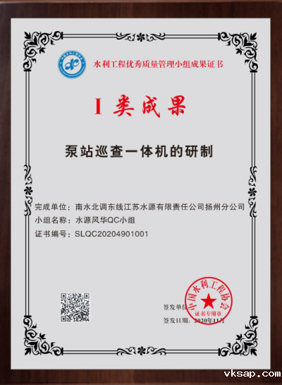 近日,全国水利工程优秀质量管理小组成果评价总结大会在杭州闭幕,江苏水源公司扬州分公司报送的现场型《降低泵站能源单耗5%》和创新型《泵站巡查一体机的研制》两个研究成果,经过专家组初审、资料评价以及现场答辩,从受理的1006项成果中脱颖而出,双双获得全国水利工程优秀质量管理I类成果奖,标志着扬州分公司在增强员工管理创新意识,促进创新成果向现实生产力转化迈出坚实的一步。