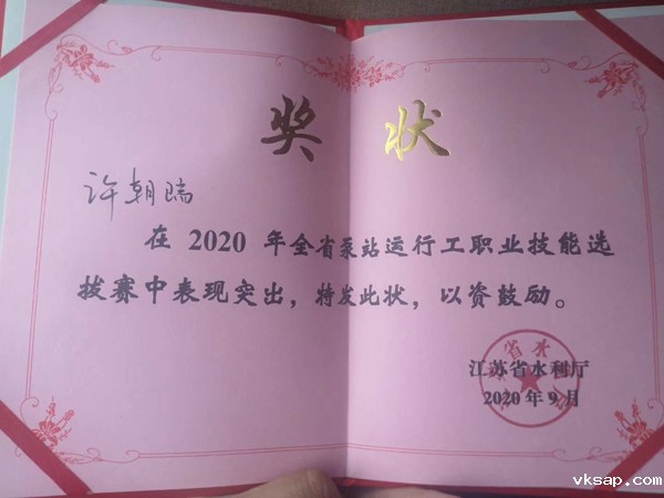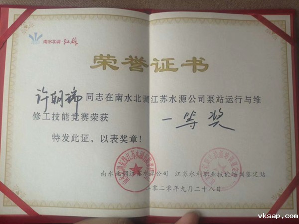 许朝瑞凭着勤奋刻苦的毅力、过硬的业务素养和扎实的基本功在公司举办的技能竞赛中逐步展现出来。今年,许朝瑞作为宿迁公司选派的参赛选手取得了由公司举办的第二期泵站运行与维修工职业技能竞赛一等奖的好名次,成为了代表南水北调江苏水源公司参加全国水利行业技能竞赛的选手。