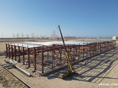 当地时间12月5日上午,中阿(联酋)产能合作示范园定制化厂房项目一期厂房钢结构主体工程全面封顶。这是继示范园生活服务区项目一期工程主体结构于上月19日顺利实现全面封顶后,园区建设传来的又一个捷报。