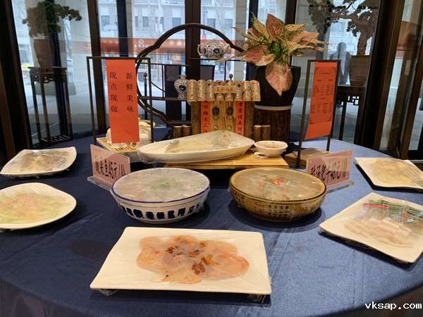 走进太平南路305号的江苏饭店西门,身穿民国特色工作装的服务员笑容可掬的迎上来。精心布置的外卖超市里,整齐的码放着包子、点心、卤菜,一旁清晰的摆放着价格表:秘制猪肉包2.8元、红糖发糕4元、八宝饭15元...这个外卖超市充分响应老客户和周边居民的需求,考虑天气寒冷,特意让市民走进饭店大堂区域选择,开门迎客。