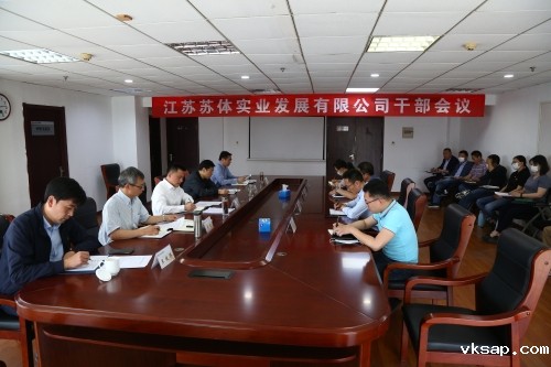 5月13日上午,江苏省体育产业集团召开苏体实业公司干部会议,宣布所属江苏苏体实业发展有限公司、江苏苏体运动科技有限公司整合重组和相关人事调整事宜。集团党委书记、董事长顾晔出席会议并讲话,党委副书记胡中强,副总经理、党委委员吴波出席会议,苏体实业公司和运动科技公司中层以上人员以及部分员工代表参加会议。会议由胡中强主持。