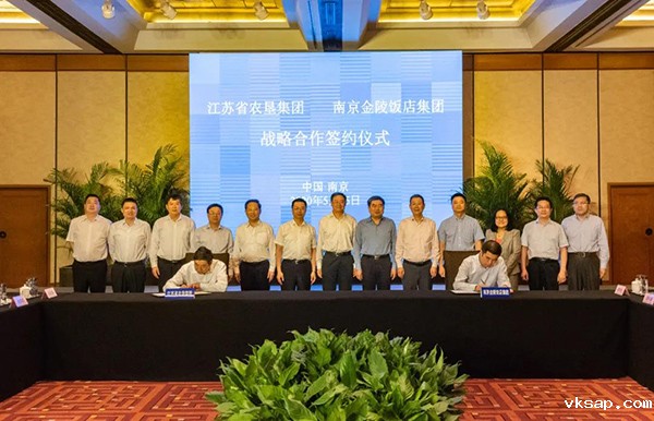 5月25日下午,江苏省农垦集团和南京金陵饭店集团在金陵饭店钟山厅举行战略合作协议签署仪式。