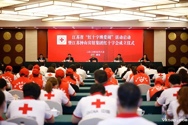 5月8日下午,江苏省“红十字博爱周”活动启动暨钟山宾馆集团红十字会成立仪式在江苏省会议中心隆重举行,省国资委一级巡视员、省红十字会副会长、钟山宾馆集团红十字会名誉会长王宁生,江苏省红十字会党组成员、副会长李培森,集团党委书记、董事长、红十字会会长朱银生,南京市红十字会党组书记、常务副会长张敏出席仪式,集团总经理、党委副书记、红十字会常务副会长郑海龙主持仪式。