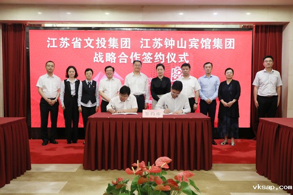 6月16日,江苏文投集团与钟山宾馆集团战略合作签约仪式在江苏省会议中心举行。省国资委副主任、党委委员李秀斌,江苏文投集团党委书记、董事长盛蕾,钟山宾馆集团党委书记、董事长朱银生出席签约仪式。钟山宾馆集团总经理、党委副书记郑海龙与江苏文投集团党委副书记叶飙荣代表双方签署战略合作协议。