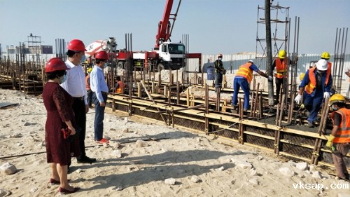 8月5日下午,正是阿布扎比当地高温酷热时段,中阿产能合作示范园定制化厂房项目正在进行基础工程混凝土浇筑工作,江苏海投公司总经理邹勇刚赴施工现场慰问指导。