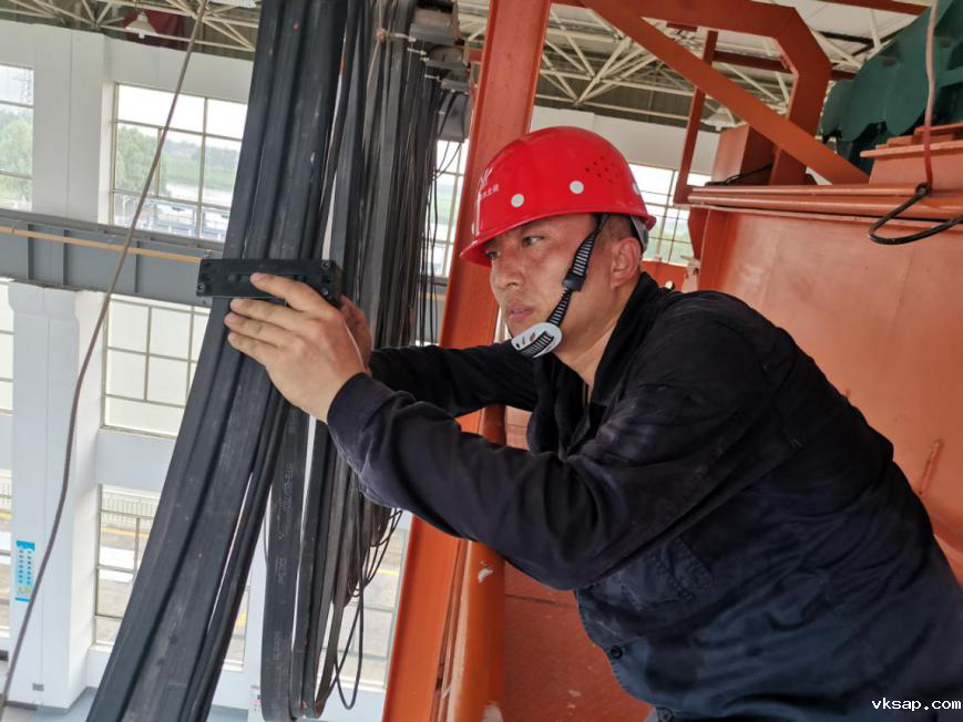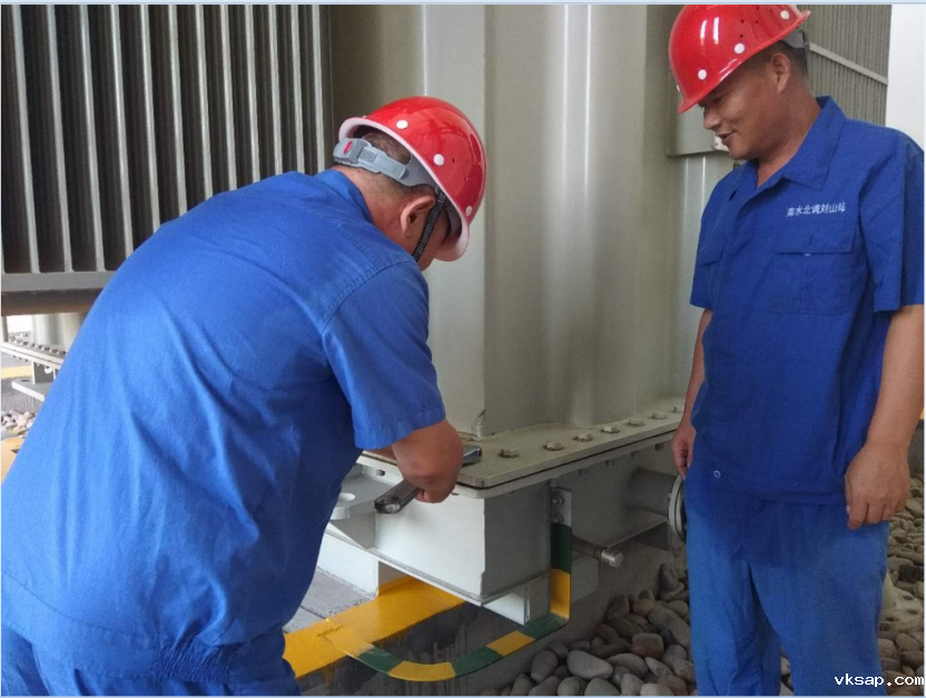 拿着试验设备从睢宁二站的主变到主厂房再到清污机,短短几分钟被汗水浸湿的衣服就被烤干,工作服上留下了一块块白色的汗渍,安全帽里的汗水不停地滴落。