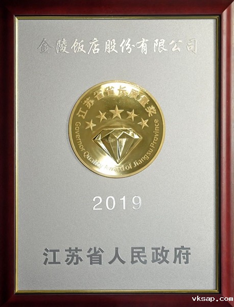 2020年9月27日上午,江苏省人民政府隆重举行江苏质量大会,宣布了《省政府关于授予2019年江苏省省长质量奖的决定》并对获奖企业进行表彰,金陵饭店股份有限公司被省政府授予2019年度“江苏省省长质量奖”,江苏省省长吴政隆、副省长马秋林等省领导为获奖企业颁奖,金陵饭店股份有限公司党委书记、董事长李茜代表企业领取奖牌。