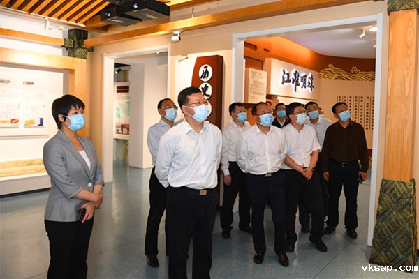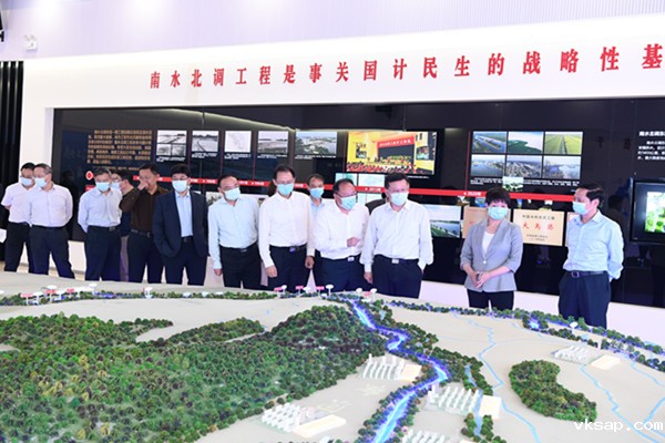 蒋旭光一行先后来到南水北调江苏水源公司总部大楼、扬州市江都水利枢纽、南水北调洪泽站、解台站等实地调研。在江苏水源公司,蒋旭光一行查看了江苏南水北调调度指挥中心、展陈室、五星级档案馆、“水源红”党建文化活动阵地等,观摩了工程智能化调度运行系统演示,并召开座谈会详细了解了江苏水源公司在经营拓展、企业管理、队伍建设等方面情况。在江都水利枢纽,蒋旭光一行调研了江苏南水北调工程展览馆、江都水利枢纽展览馆和江都第四抽水站等地,听取了江苏治水历程、江水北调工程和江都水利枢纽等情况介绍。在洪泽站和解台站,蒋旭光一行实地考察工程运行管理、维修养护、安全生产、标准化建设和水生态资源开发利用成效等情况。