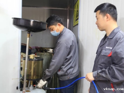 在末端治理上,废气治理设施与涉VOCs排放工序同步开启;排水设施上实现雨污管网分离,将污染度小的废水经过改造进行循环再利用,节约用水资源。除此之外,金钟山汽修还建立了规范的台账,例如:废弃物品处理、冷媒回收,节能环保设施设备的购置、保养、使用,各种废弃物的收集、处理、回收,职工节能环保知识培训情况等信息。