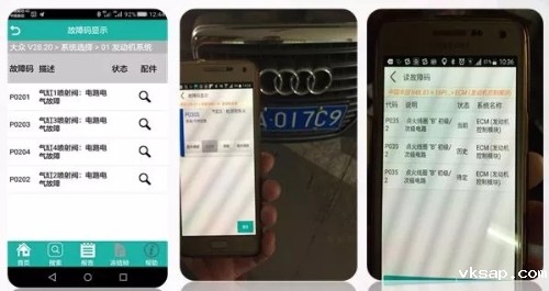 在汽车故障诊断时,为提高故障检测的准确性、及时性,金钟山汽修为维修技师配备智能手机车辆故障检测系统,只需在手机下载APP,将蓝牙的OBD2检测插头插在车上,与手机软件通讯连接,即可一键准确读取故障码,为维修技师带来高效率的工作。另外在特定诊断方法的选择上,对存在环境污染和损害的诊断方法进行优化改进,最大程度避免环境污染问题。