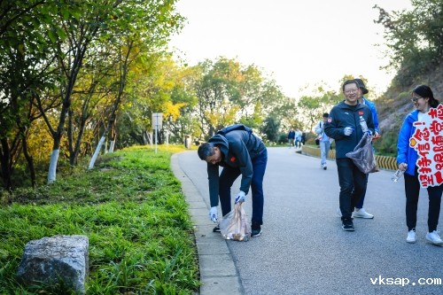 一段活力热身操后,集团领导摁响发令喇叭,近百名参赛选手冲出起跑线,开始了迎难而上的攀登之旅。蜿蜒曲折的山路并不能阻碍选手们矫健的步伐,大家你追我赶,朝着山顶奋进。比赛沿途还设置了党史知识打卡点,参赛选手们在踊跃答题中重温党史,坚定信念,身体也得到了休息和缓冲。而由集团党员领导干部和部分职工组成的“环保公益志愿小队”,更是在下山途中拾取沿途垃圾,为守护绿水青山、共建文明新时代贡献自己的一份力量。