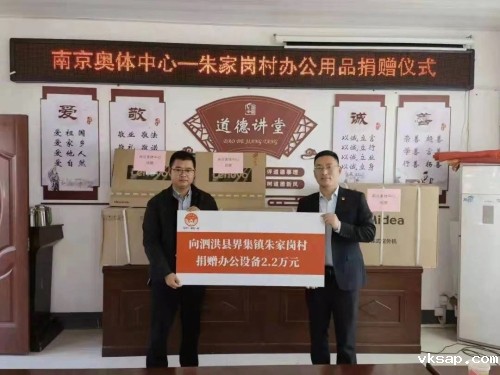 当日,南京奥体中心和省足协一行还来到“联盟兄弟单位”朱家岗村,捐赠了空调、电脑、打印机等办公设备,助力该村更好地提供便民服务。