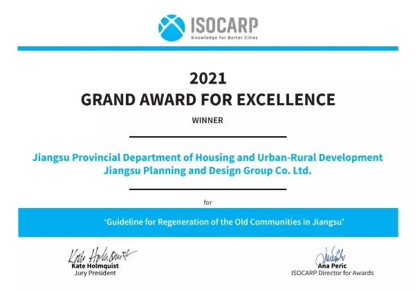 《江苏老旧小区改造技术指南》获ISOCARP“规划卓越大奖”证书
