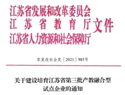 为切实贯彻党的十九大和全国教育大会精神,积极响应中央和江苏省产教融合有关政策,进一步推动和深化产教融合、校企合作,充分发挥企业在技术技能人才培养和人力资源开发中的重要主体作用,按照《省发展改革委 省教育厅 省人力资源社会保障厅关于组织2020年产教融合型试点企业申报工作的通知》(苏发改社会法〔2020〕694号)有关要求,南京金陵饭店集团有限公司结合企业发展需要和自身优势,于2020年积极申报江苏省产教融合型试点企业。