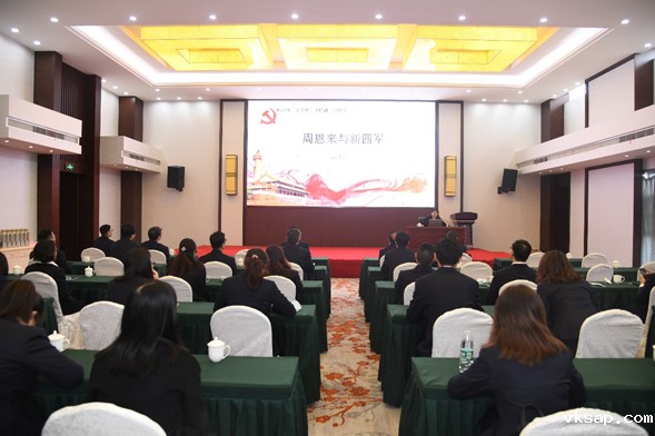 为做深做实党史学习教育,现场组织开展《周恩来与新四军》专题党课。句容新四军纪念馆陈列保管部主任、文博副研究馆员、镇江市“169工程”科技骨干沈君芳老师用生动的故事、翔实的图片,和大家共同追忆了全党楷模一代伟人周恩来,从5个方面梳理了周恩来在新四军创建过程中所作出的杰出贡献,展现了他崇高的精神风貌,他的光辉事迹永远值得讲述,他的奋斗精神永远值得传承。