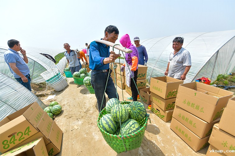 去年冬季至今,仓东公司已陆续完成瓜棚架设、品种育苗、藤蔓打理、覆膜除草和授粉疏果等一系列工序,头茬8424、全美4K、浙蜜8号、浙蜜10号等质优品种西瓜已集中上市。