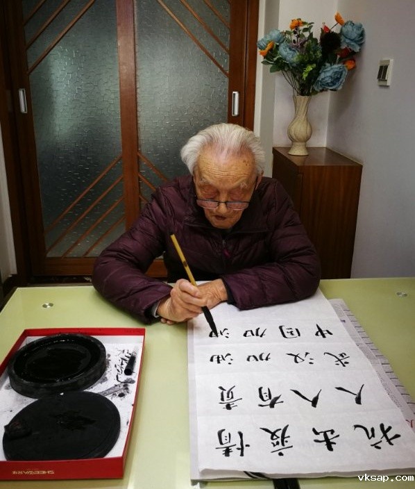 离休前范老一直在经贸和盐业系统工作,离休后,他仍然数十年如一日关注着国家的建设发展。“父亲订阅了《人民日报》《新华日报》等,每天都认真阅读,一方面是了解国家经济社会发展情况,一方面,也是不断地学习党的方针政策。”范钦华说,范老每天上下午各坚持练习毛笔书法一个半小时,既锻炼身体,又修身养性。他抄写的都是毛泽东选集、邓小平文选等理论作品。这两年,他用心抄写《习近平谈治国理政》、党的十八大、十九大报告等,并装订成册。新冠肺炎疫情发生后,他挥笔书写“抗击疫情、人人有责,武汉加油、中国加油”,表达了一名百岁老党员对抗击疫情的坚定信心和责任担当。