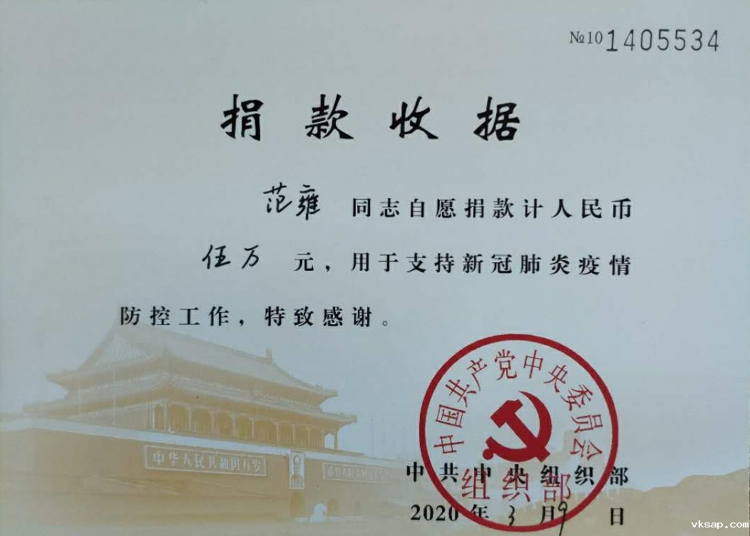 2020年3月9日,正在组织全体党员踊跃捐款支持防控新冠肺炎疫情的苏盐集团党委,收到了一笔5万元的大额捐款。提交这笔捐款的,是百岁老党员范雍。这次捐款,已经不是他第一次捐出大额款项了。