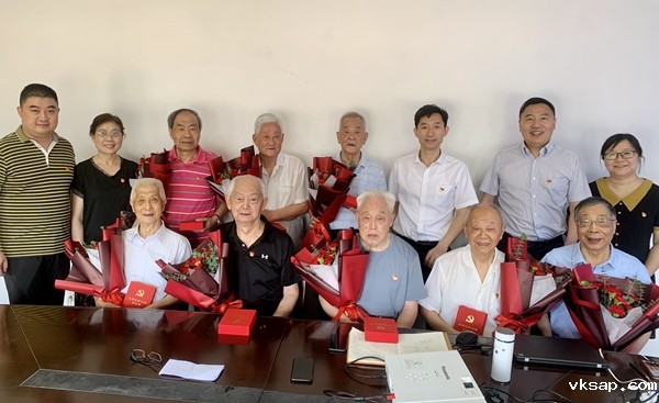 颁发仪式在国歌声中开始,崔兆飞代表集团党委向“光荣在党50年”的老党员颁发纪念章。他在致辞时指出,今年是中国共产党成立100周年,为党龄达到50年的老党员颁发纪念章,是以习近平同志为核心的党中央对长期忠诚于党的老党员的关心厚爱,是对老党员历史功绩的充分肯定,是全党同志对老党员的集中致敬,也是年轻党员们传承红色基因的一次精神洗礼。他表示,集团党委衷心祝愿各位老党员们身体健康,安享晚年,期望老党员们继续发挥热量,为传承红色基因、为国家和社会作出力所能及的贡献;集团其他党员要向老党员们学习,无论革命战争年代还是和平发展时期,要始终做到不忘初心、牢记使命,赓续红色基因,担当历史使命,争做时代新人,在全面建设社会主义现代化国家的新征程上谱写时代新篇章。