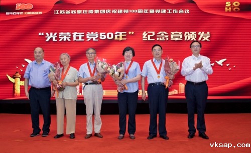 6月29日下午,苏豪控股集团党委隆重召开庆祝中国共产党成立100周年暨党建工作会议。省国资委一级巡视员王宁生一行、集团外部董事、“光荣在党50年”苏豪老党员代表应邀出席会议。