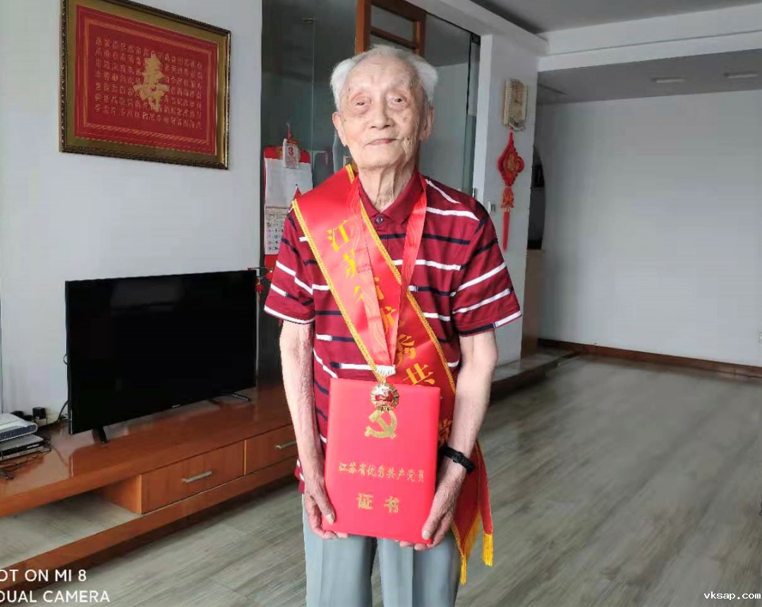 7月1日下午,江苏省庆祝中国共产党成立100周年座谈会暨“两优一先”表彰会议在宁举行。苏盐集团百岁老党员范雍同志被授予“江苏省优秀共产党员”称号。