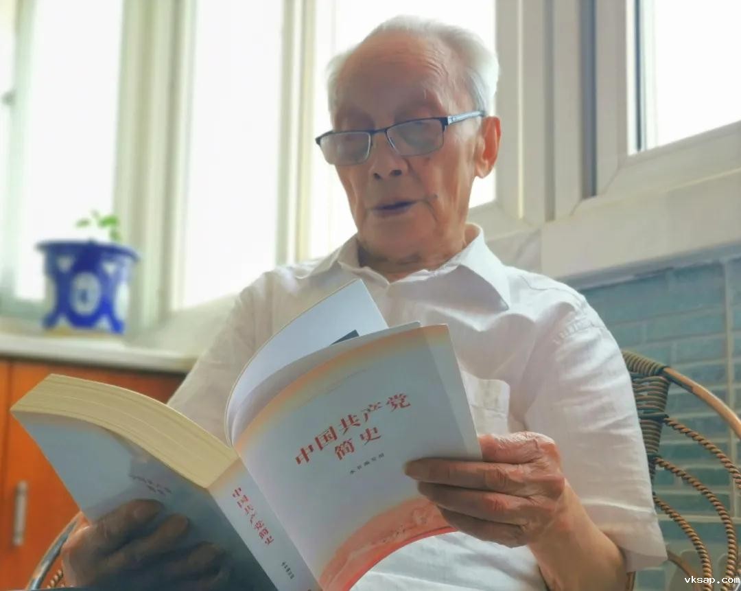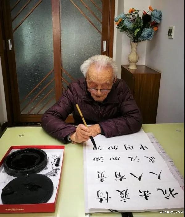 离休前范老一直在经贸和盐业系统工作,离休后,他仍然数十年如一日关注着国家的建设发展。他订阅了《人民日报》《新华日报》等,每天都认真阅读,一方面是了解国家经济社会发展情况,一方面,也是不断地学习党的方针政策。范老每天上下午坚持练习毛笔书法一个半小时,既锻炼身体,又修身养性。他抄写的都是毛泽东选集、邓小平文选等理论作品。这两年,他用心抄写《习近平谈治国理政》、党的十八大、十九大报告等,并装订成册。新冠肺炎疫情发生后,他挥笔书写“抗击疫情、人人有责,武汉加油、中国加油”,表达了一名百岁老党员对抗击疫情的坚定信心和责任担当。党史学习教育开展以来,范老认真坚持学习习近平《论中国共产党历史》《中国共产党简史》等书籍。