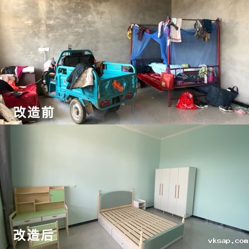 改造后的小屋干净整洁,铺设了地板,更换了窗帘,配备了空调、衣橱、床和床垫、书桌书架等一系列家具和生活设施,还为受助学生添置了崭新的学习用品。