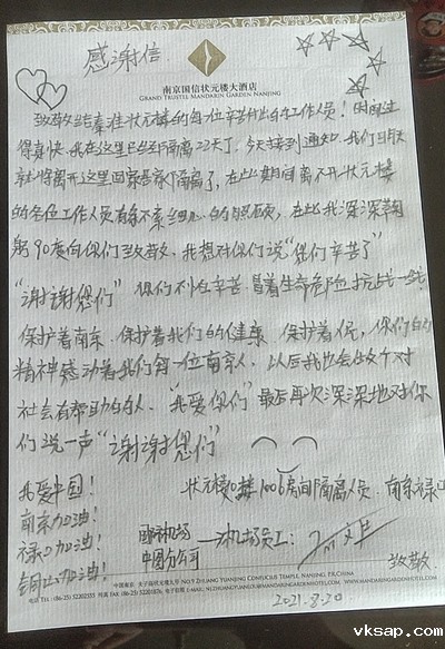 8月21日上午10:30,最后一批共计287名宾客登车离店,南京金陵状元楼作为“集中医学观察点”的任务宣告圆满完成。成绩的背后,是状元楼人23个日夜的坚守和付出。