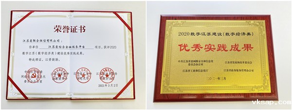 其中,江苏省综合金融服务平台获评由省委网信办、省发展改革委、省工业和信息化厅、省政务办联合颁发的“2020数字江苏建设(数字经济类)优秀实践成果”。