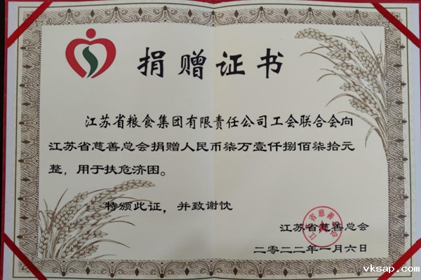 近日,江苏省慈善总会向集团工会颁发捐赠证书,对集团在2021年“慈善一日捐”活动中踊跃捐款表示感谢。