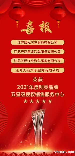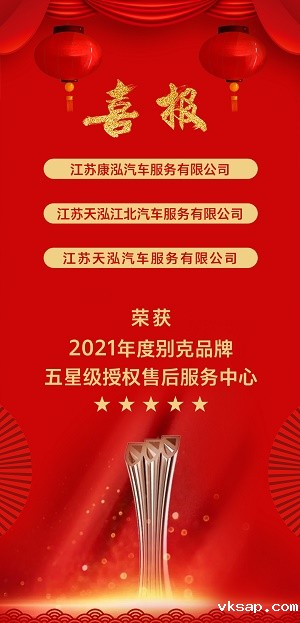 天泓服务、康泓、紫金、江北四家单位均荣获“2021年度别克品牌五星级授权销售服务中心”最高荣誉,天泓服务、康泓、江北三家单位获得“2021年度别克品牌五星级授权售后服务中心”最高荣誉。其他单位也获得多项星级荣誉,其中,天泓楚汉、丰乐、瑞杰三家单位获得“2021年度别克品牌四星级授权销售服务中心”称号,天泓楚汉、丰乐、紫金三家单位获得“2021年度别克品牌四星级授权售后服务中心”称号;天泓丰泰获得“2021年度别克品牌三星级授权销售服务中心”称号,天泓瑞杰、丰泰两家单位获得“2021年度别克品牌三星级授权售后服务中心”称号。