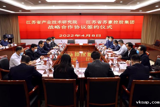 4月8日下午,苏豪控股集团与江苏省产业技术研究院在苏豪国际广场举行战略合作协议签约仪式。