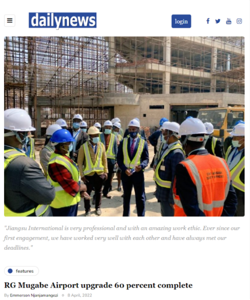 3月22日,津巴布韦当地最大报社之一《Daily news》对由集团承建的维多利亚瀑布国际机场和哈拉雷国际机场(RG Mugabe Airport)两个改扩建项目进行了重点报道。文章介绍了两个项目的建设内容及新建机场为津巴布韦带来的经济效益,高度赞誉集团在津期间履行的良好社会责任义务,为当地经济民生带来了切实收益。