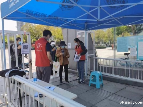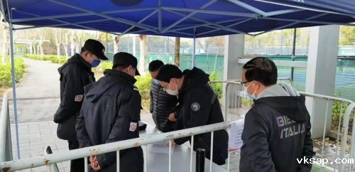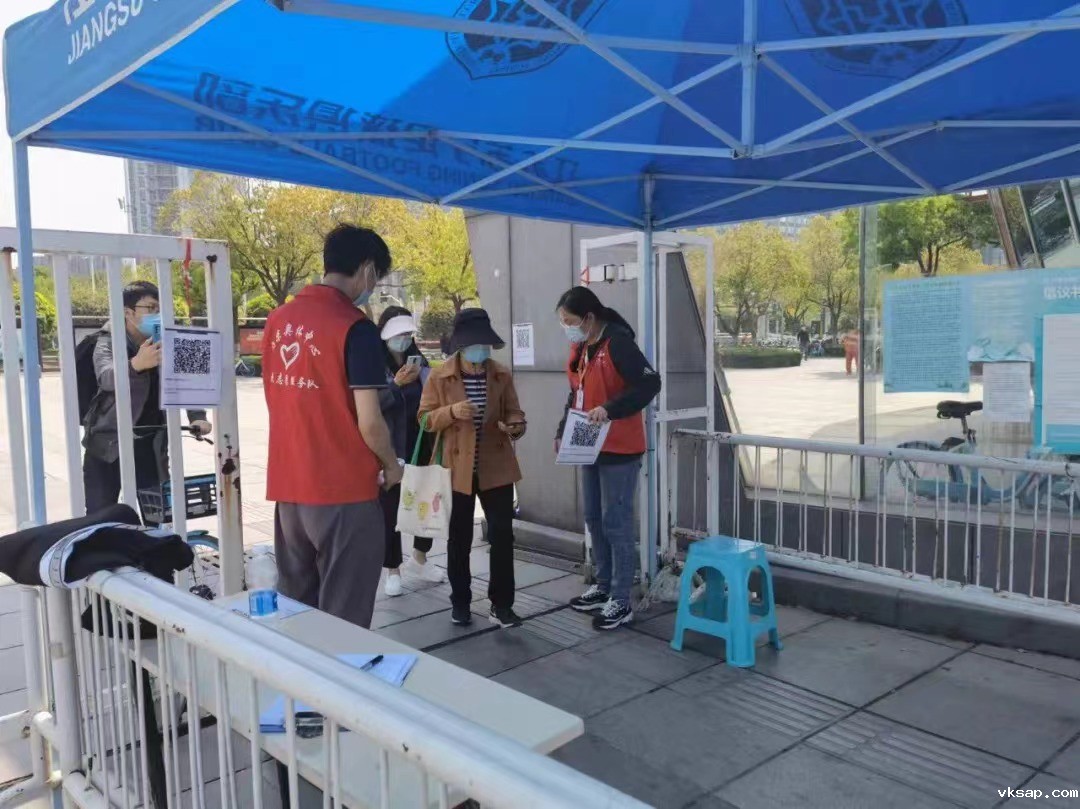 南京奥体中心组建一支志愿者服务队,组织员工轮流以志愿者的身份在园区各出入口、室外场地和办公商户出入口执行测温、验码、登记工作,向市民进行政府防疫政策的宣传解读和解疑释惑,有效缓解园区安保人员紧张的难题。
