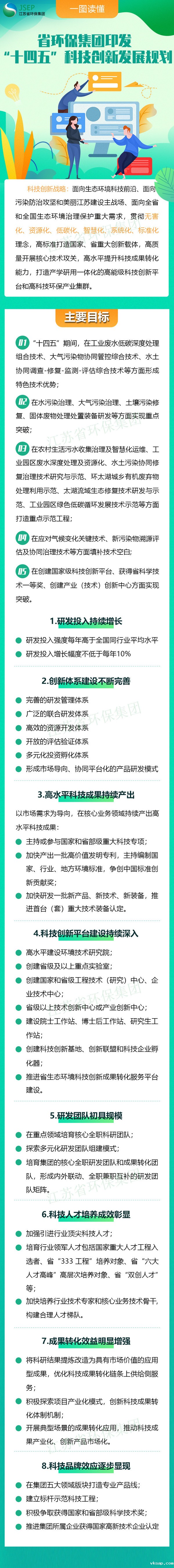 为深入学习贯彻习近平总书记重要讲话精神特别是关于科技创新的重要论述,认真落实生态环境部、省委省政府部署要求,坚持把科技创新作为引领集团高质量发展的第一动力,加快打造国内领先、国际一流高科技环保领军企业,省环保集团近日印发《江苏省环保集团“十四五”科技创新发展规划》(以下简称“规划”)。