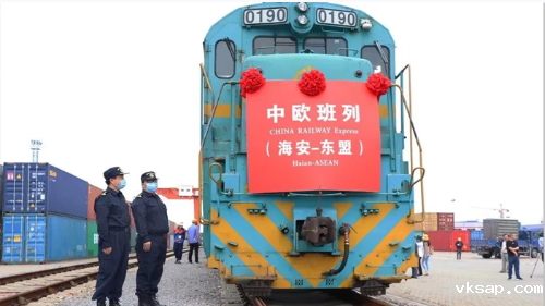 6月28日3时46分,一列满载72个标箱包装品、纺织布匹和柴油机等江苏省内货物的国际货运班列从南通海安发出,将经广西凭祥口岸出境,驶向越南河内。该趟列车的发出标志着江苏中欧(亚)班列今年开行突破1000列,是中欧班列“江苏号”持续稳定运行的一个缩影。