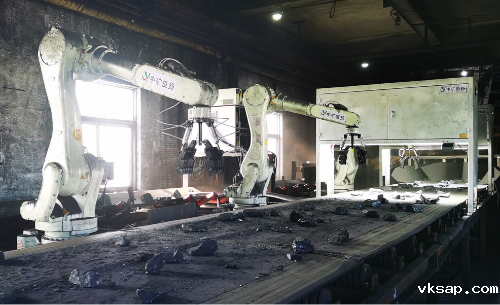 智能选矸——选用4~6轴高效机器人替代人工选矸石,通过图像识别、动态定位程序等,能够轻松高效分离矸石,对大小、形状不一的煤块快速抓取并归类,确保煤炭“颗粒归仓”。该智能分拣系统的投入使用,标志着煤炭洗选告别人工拣选时代,实现了“无人值守”,减轻了职工劳动强度,提高了矿井安全系数。