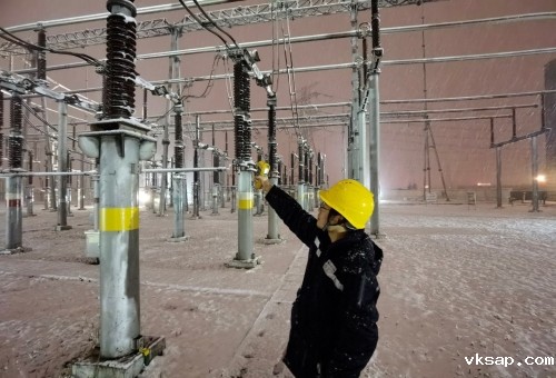 在连云港新海电厂,运行维护人员冒着严寒开展雪中专项检查工作,对主变、高备变等室外电气设备及周边进行重点排查,狠抓防寒防冻工作措施落实,实施重点部位“一机一策”特巡特护,保证设备“满格在线”。