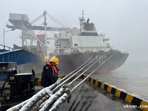 在国信靖江港,满载着5万吨燃煤的轮船缓缓驶入,党员突击队冒雪出击,坚守卸船现场,合理调度港口资源、优化港口接卸方案,千方百计保障了机组“口粮”供应。